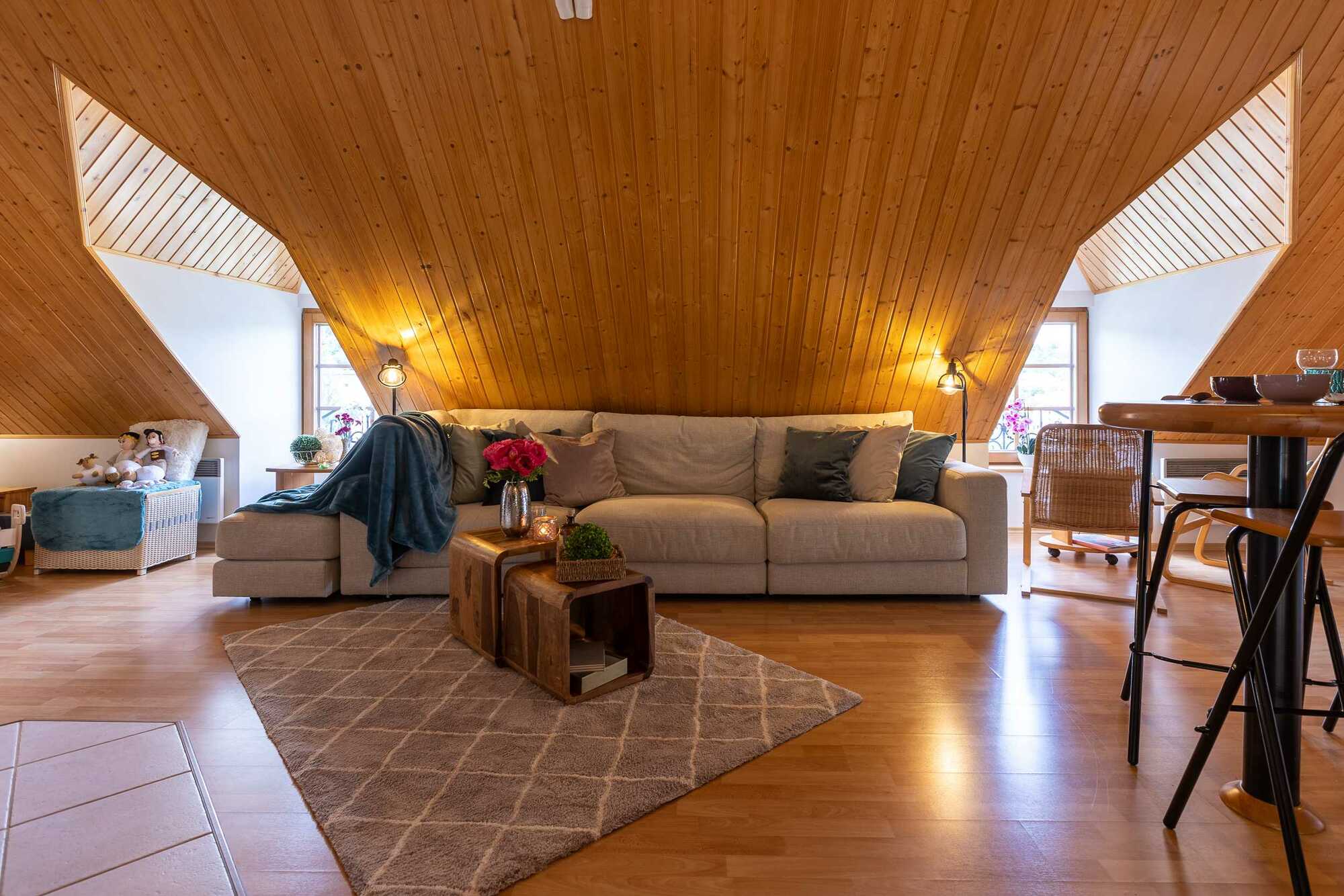 Na hornom poschodí v časti „Lia“ sa zasa môžete oddať luxusu a elegancii v troch veľkých podkrovných izbách. Dve samostatné spálne, jedna s manželskou posteľou a dvomi samostantými lôžkami, a druhá s manželskou posteľou a možnosťou prístelky. Najobľúbenejším priestranstvom horného podlažia je bezpochyby veľkolepá obývačka s TV prepojená s kuchyňou. V zime určite oceníte aj prakticky umiestnený poctivo murovaný štýlový krb. V lete vám zase padne viac ako vhod posedenie na priestrannej loggii s výhľadom do záhrady. Aj druhé podlažie vám ponúkne pohodlnú veľkú kúpeľňu so sprchovacím kútom a WC. V jednej zo spální nájdete postieľku pre najmenších.